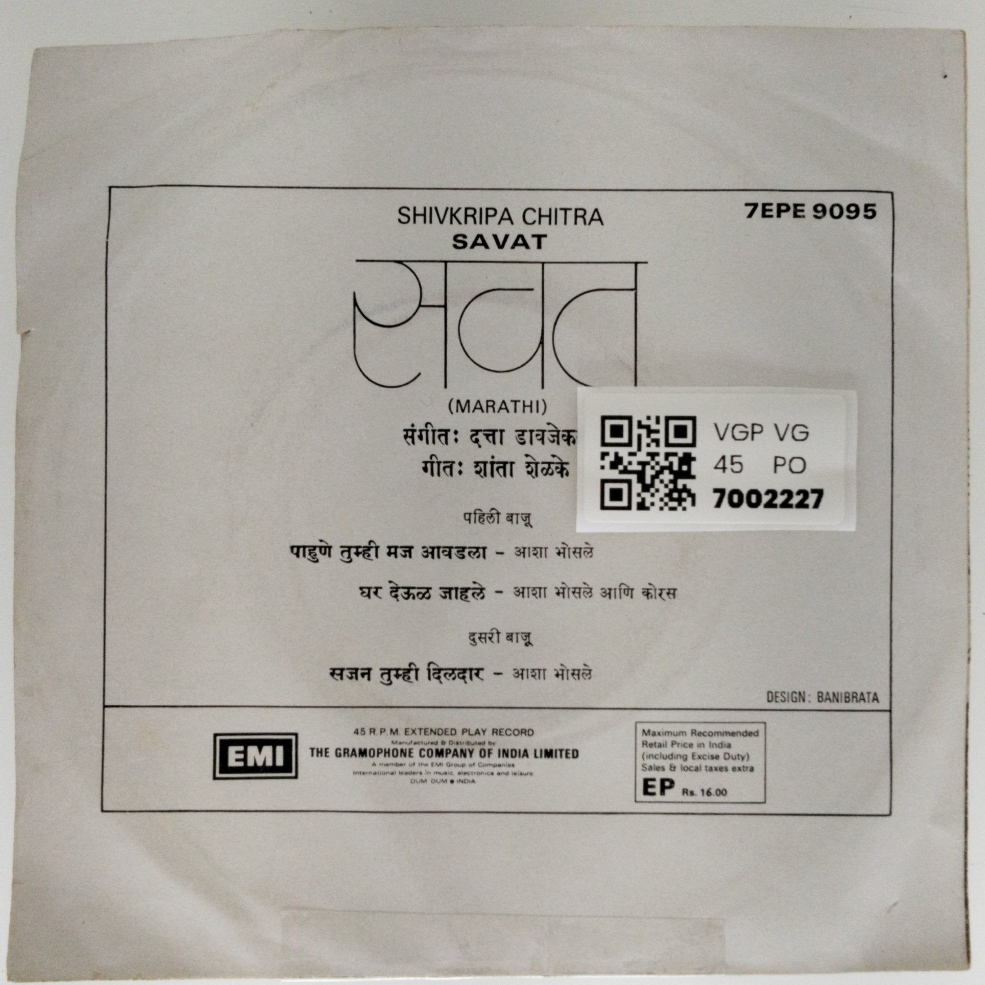 दत्ता डावजेकर - SAVAT (45-RPM)