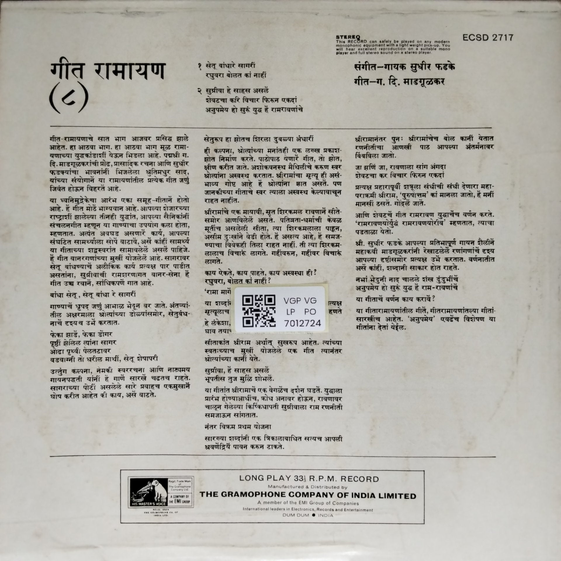 Kindly note, the photos shown of the LPs are stock photos and if you have any doubts/clarifications, please communicate to us before ordering.