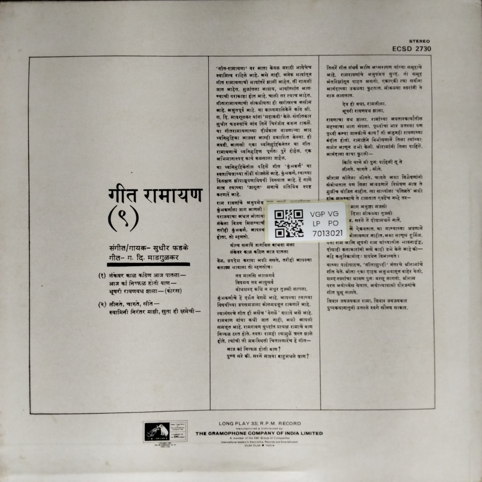 | Label | The Gramophone Company of India Limited |