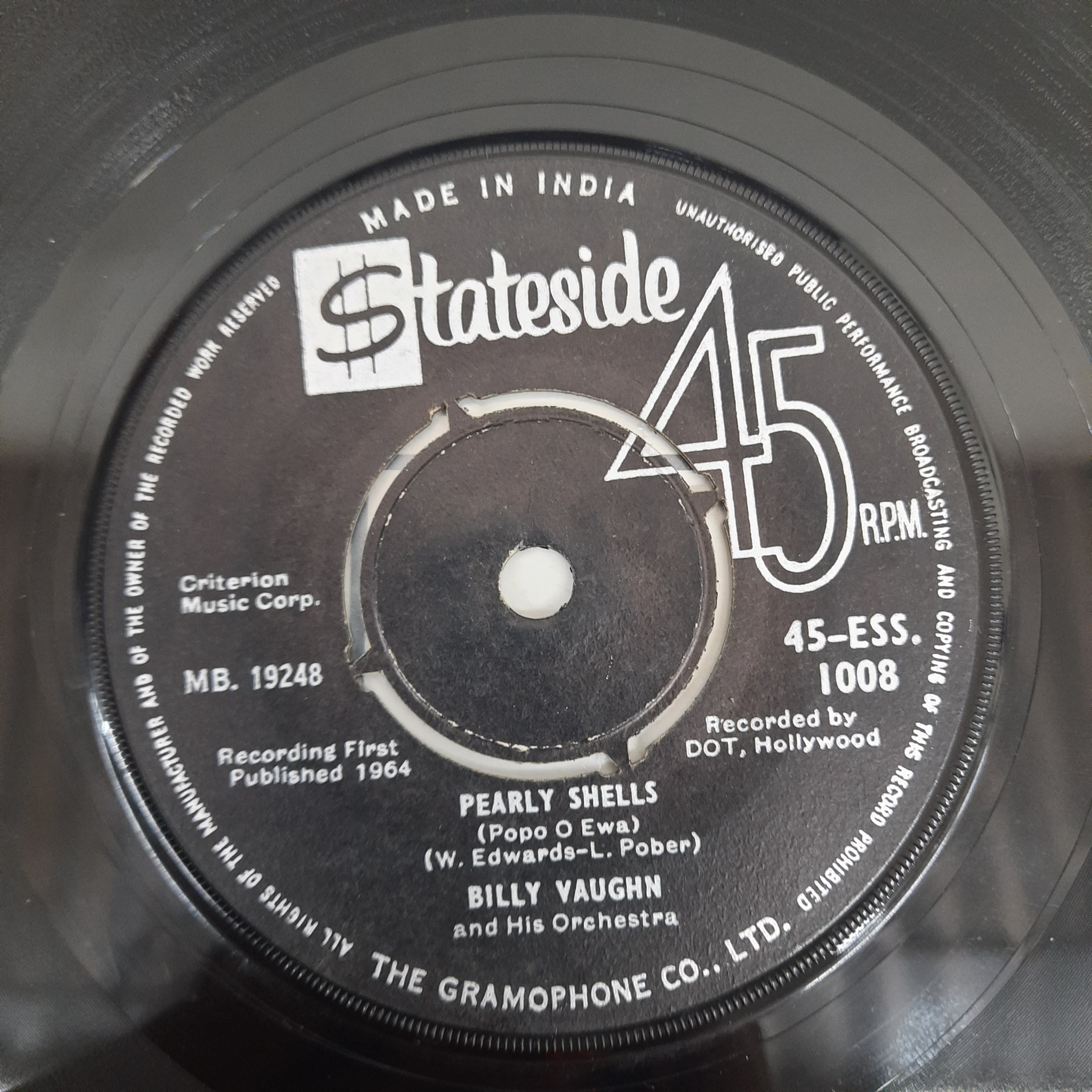 Generally worth 50% of the Near Mint value. A Very Good Plus record will show some signs that it was played and otherwise handled by a previous owner who took good care of it. Defects should be more of a cosmetic nature, not affecting the actual playback as a whole. Record surfaces may show some signs of wear and may have slight scuffs or very light scratches that don’t affect one’s listening experiences. Some background crackle esp in silent pasages is acceptable. Slight warps that do not affect the sound are “OK”. The label may have some ring wear or discoloration, but it should be barely noticeable. Spindle marks may be present. Picture sleeves and inner sleeves will have some slight wear, slightly turned-up corners, or a slight seam split. An LP cover may have slight signs of wear, and may be marred by a cut-out hole, indentation, or cut corner. In general, if not for a couple of minor things wrong with it, this would be Near Mint.