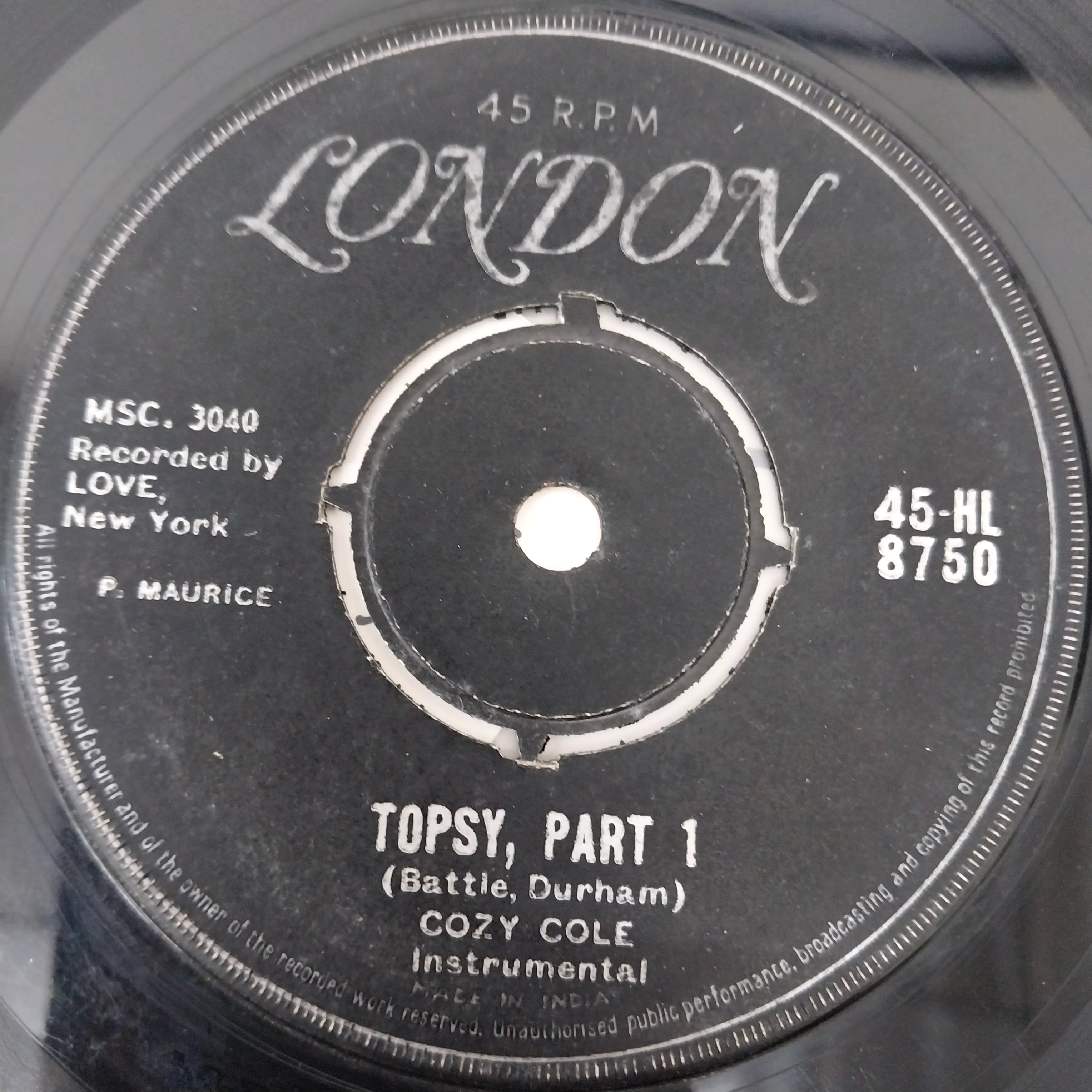 A nearly perfect record. A NM or M- record has more than likely never been played, and the vinyl will play perfectly, with no imperfections during playback. Many dealers won’t give a grade higher than this implying (perhaps correctly) that no record is ever truly perfect. The record should show no obvious signs of wear. A 45 RPM or EP sleeve should have no more than the most minor defects, such as any sign of slight handling. An LP cover should have no creases, folds, seam splits, cut-out holes, or other noticeable similar defects. The same should be true of any other inserts, such as posters, lyric sleeves, etc.