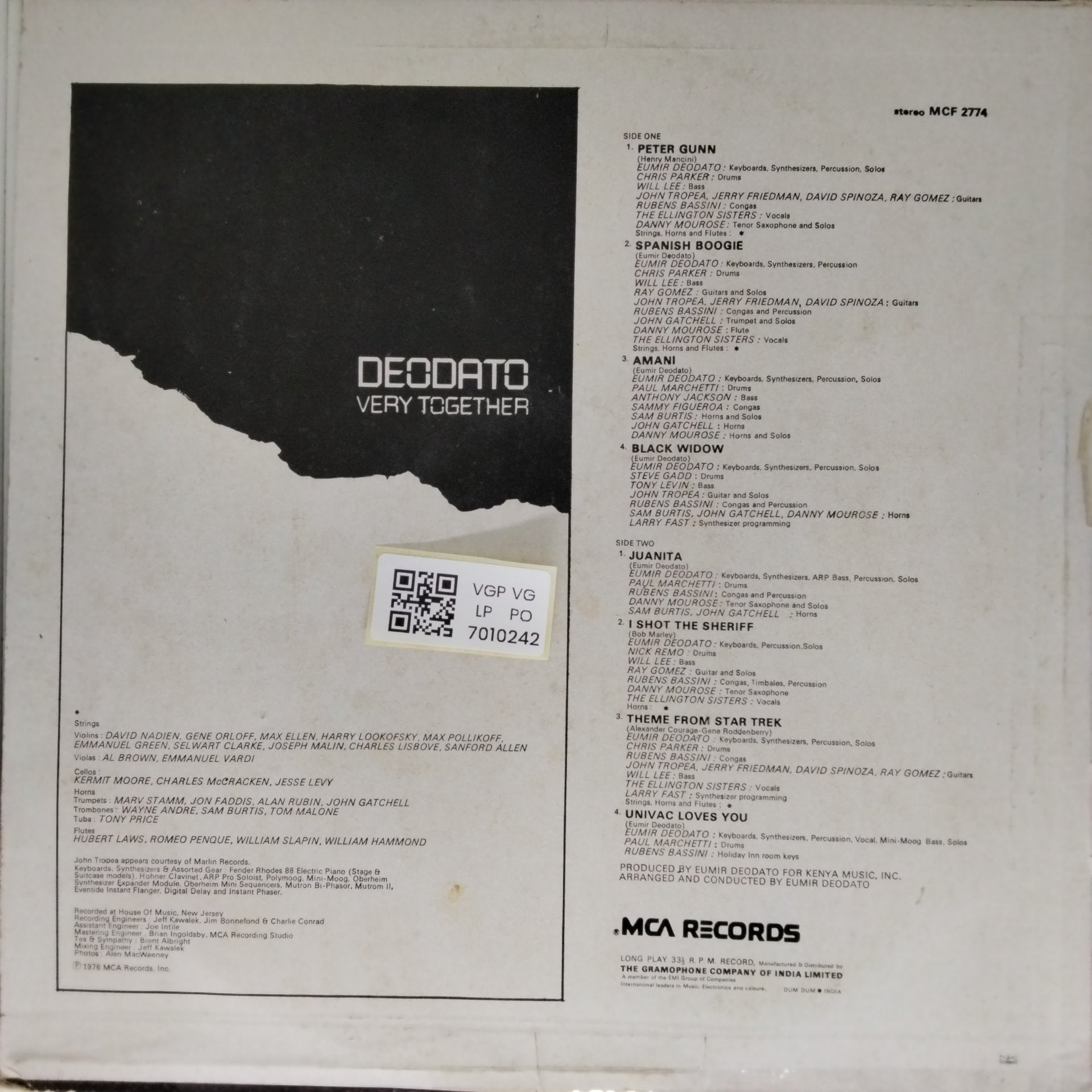 Generally worth 50% of the Near Mint value. A Very Good Plus record will show some signs that it was played and otherwise handled by a previous owner who took good care of it. Defects should be more of a cosmetic nature, not affecting the actual playback as a whole. Record surfaces may show some signs of wear and may have slight scuffs or very light scratches that don’t affect one’s listening experiences. Some background crackle esp in silent pasages is acceptable. Slight warps that do not affect the sound are “OK”. The label may have some ring wear or discoloration, but it should be barely noticeable. Spindle marks may be present. Picture sleeves and inner sleeves will have some slight wear, slightly turned-up corners, or a slight seam split. An LP cover may have slight signs of wear, and may be marred by a cut-out hole, indentation, or cut corner. In general, if not for a couple of minor things wrong with it, this would be Near Mint.