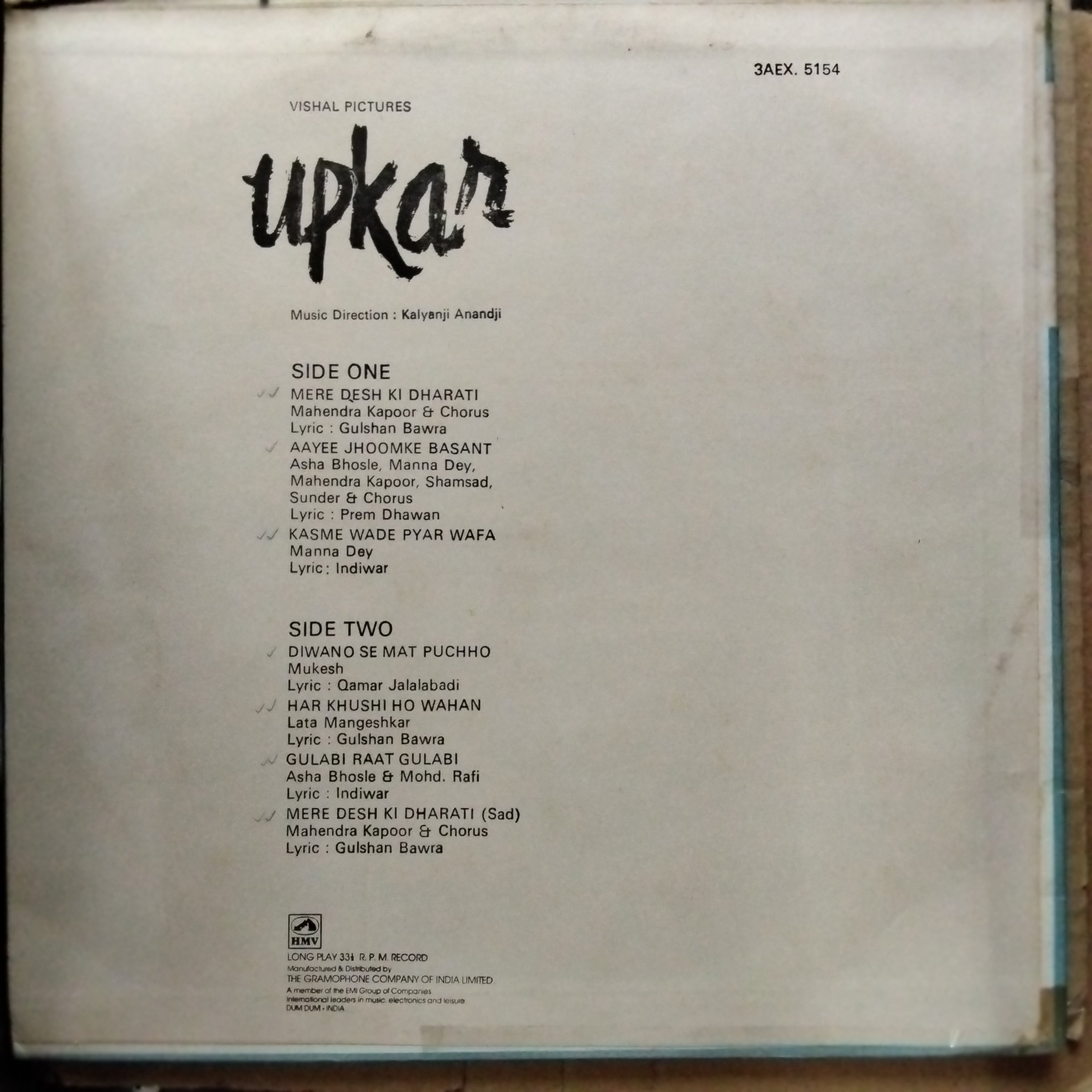 Kindly note, the photos shown of the LPs are stock photos and if you have any doubts/clarifications, please communicate to us before ordering.