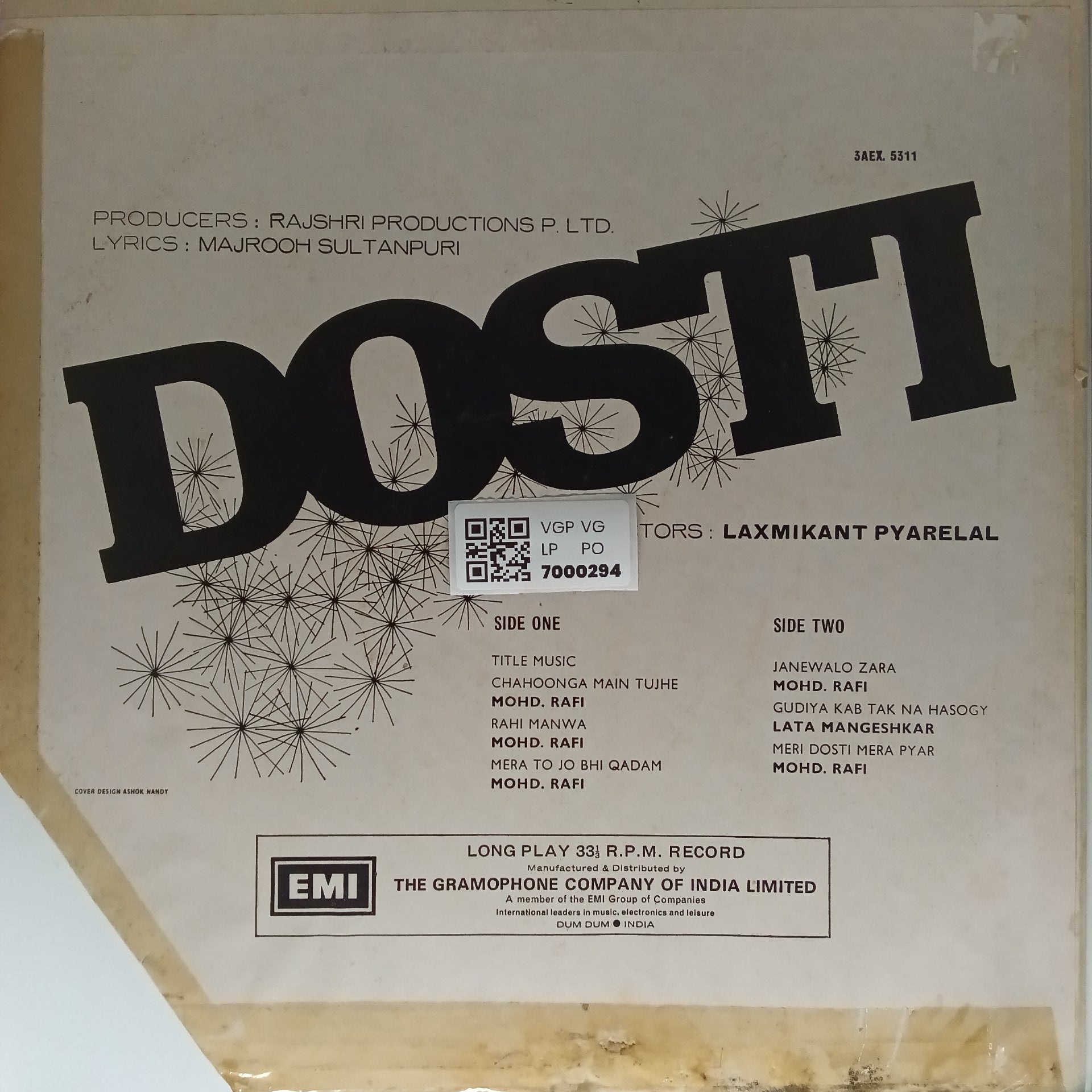 Kindly note, the photos shown of the LPs are stock photos and if you have any doubts/clarifications, please communicate to us before ordering.