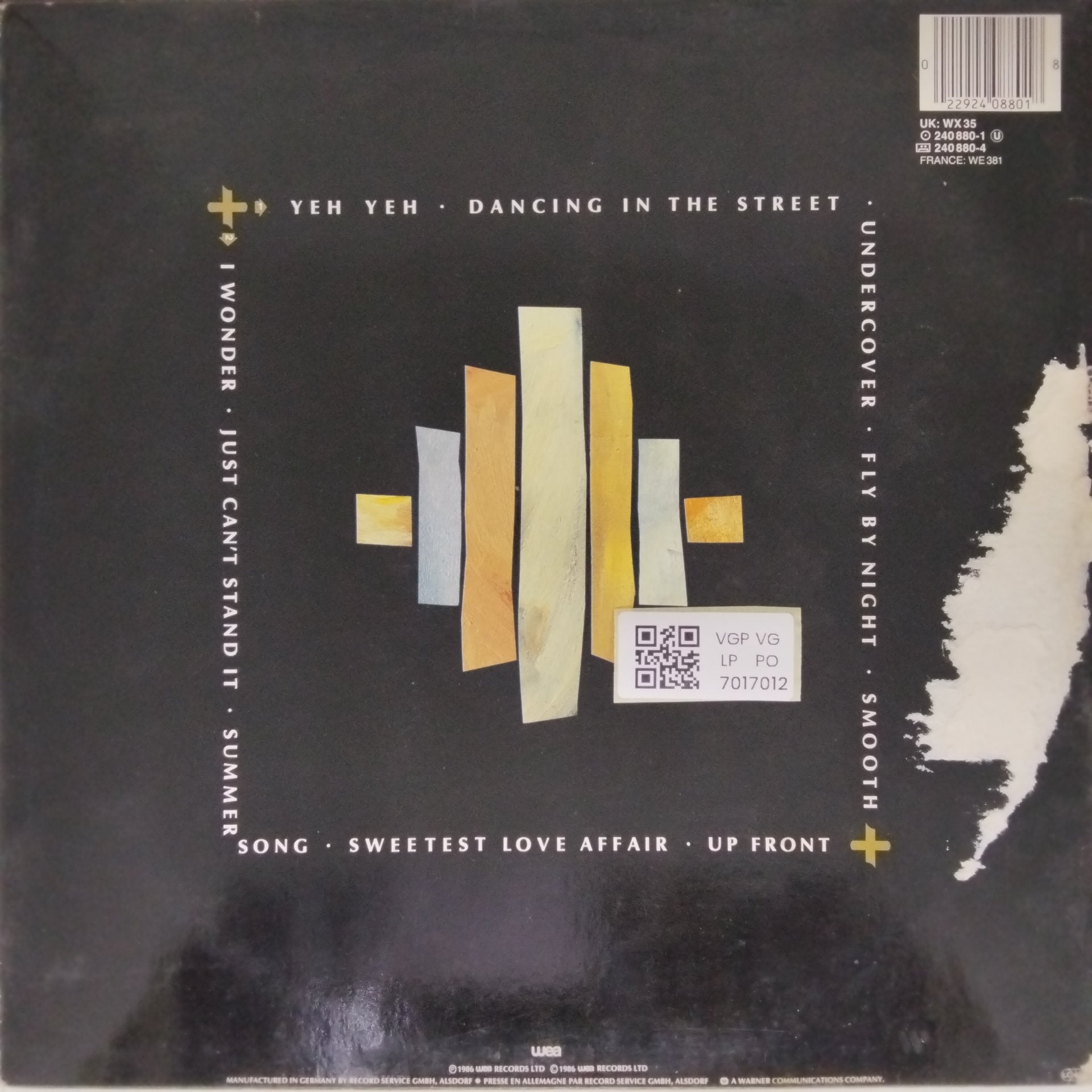 Generally worth 50% of the Near Mint value. A Very Good Plus record will show some signs that it was played and otherwise handled by a previous owner who took good care of it. Defects should be more of a cosmetic nature, not affecting the actual playback as a whole. Record surfaces may show some signs of wear and may have slight scuffs or very light scratches that don’t affect one’s listening experiences. Some background crackle esp in silent pasages is acceptable. Slight warps that do not affect the sound are “OK”. The label may have some ring wear or discoloration, but it should be barely noticeable. Spindle marks may be present. Picture sleeves and inner sleeves will have some slight wear, slightly turned-up corners, or a slight seam split. An LP cover may have slight signs of wear, and may be marred by a cut-out hole, indentation, or cut corner. In general, if not for a couple of minor things wrong with it, this would be Near Mint.