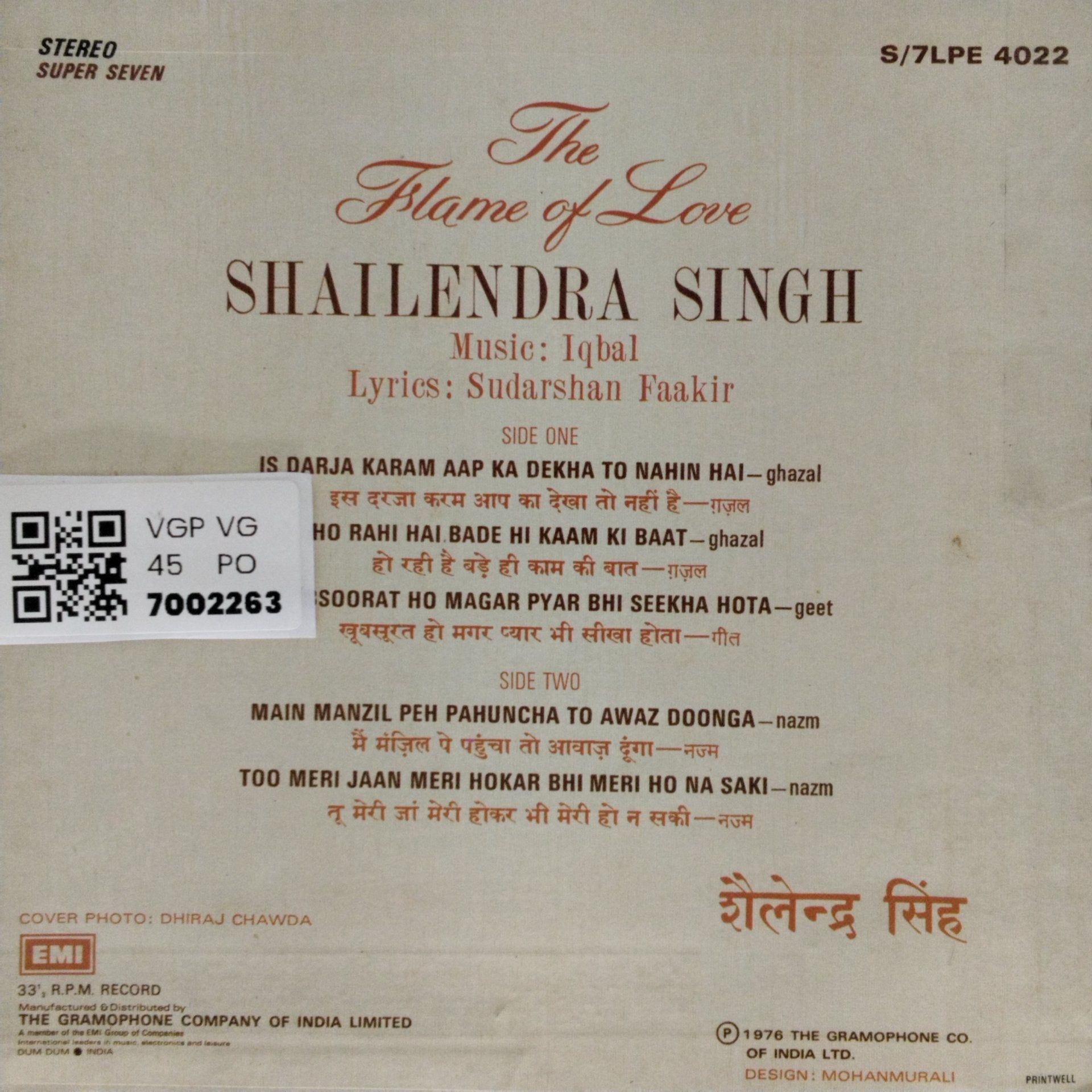 Kindly note, the photos shown of the LPs are stock photos and if you have any doubts/clarifications, please communicate to us before ordering.