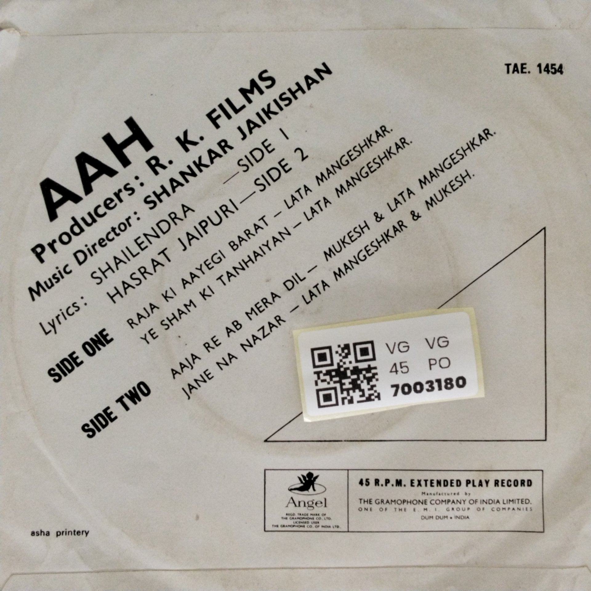 | Remarks | Minor Scratches, HMV label |