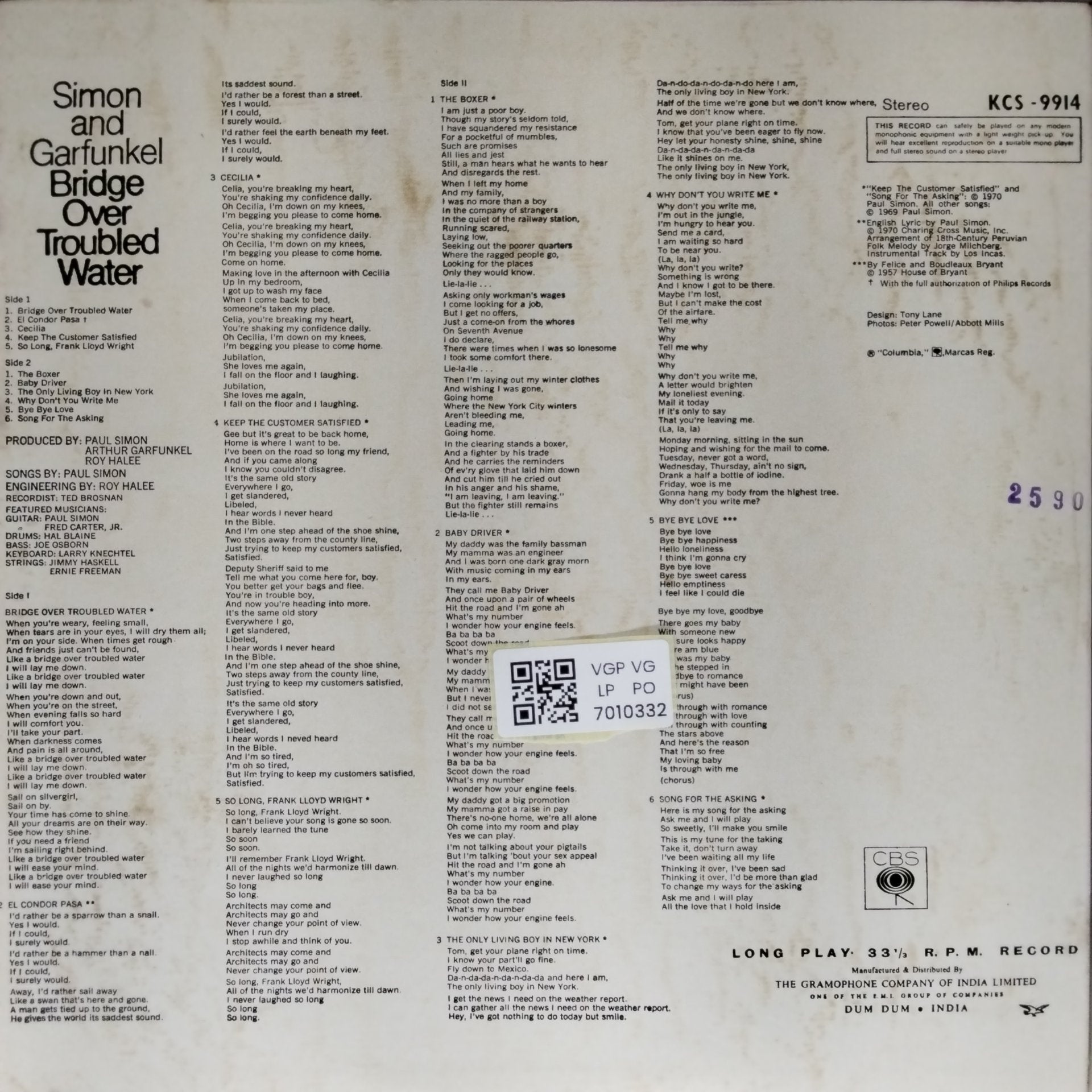 Kindly note, the photos shown of the LPs are stock photos and if you have any doubts/clarifications, please communicate to us before ordering.