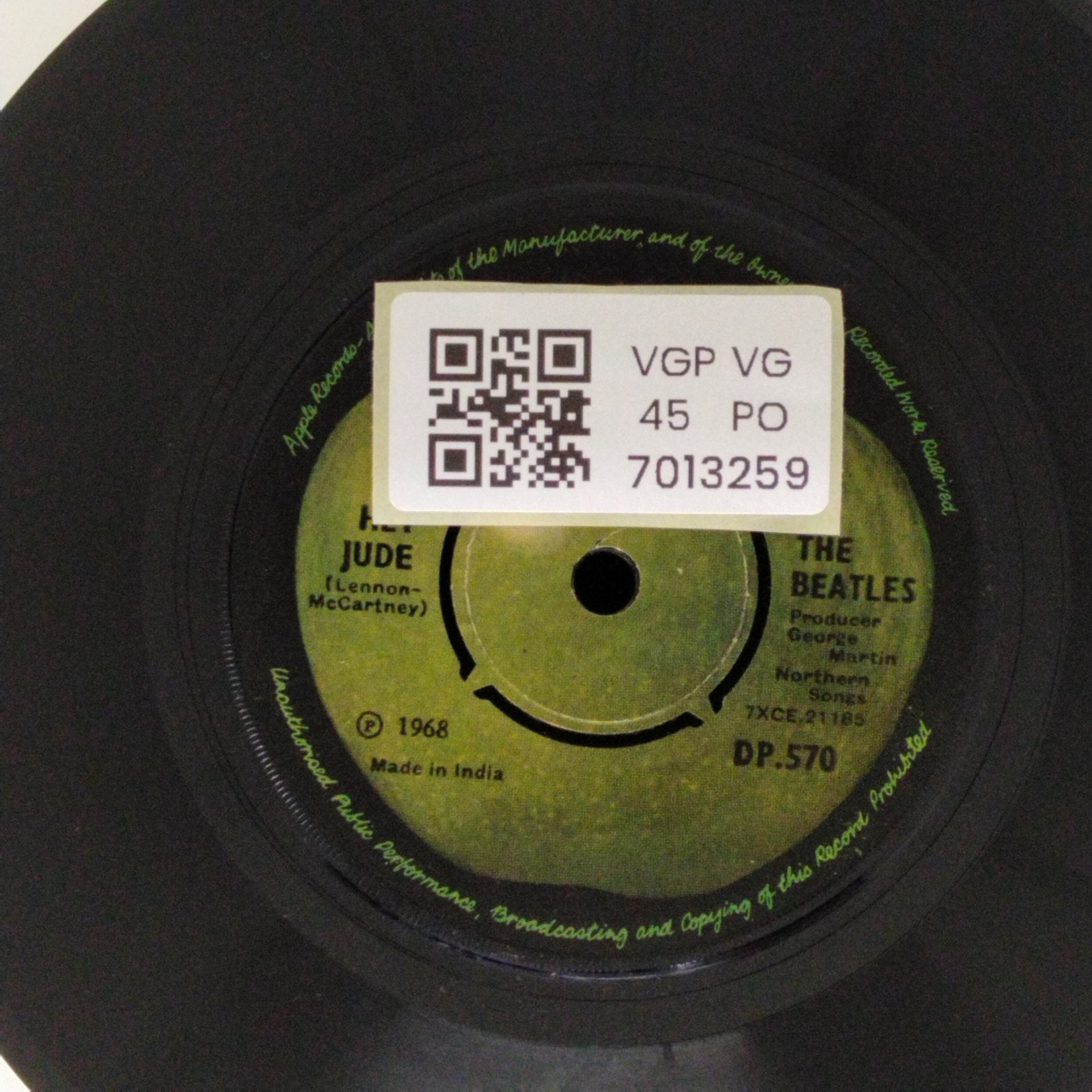 Generally worth 50% of the Near Mint value. A Very Good Plus record will show some signs that it was played and otherwise handled by a previous owner who took good care of it. Defects should be more of a cosmetic nature, not affecting the actual playback as a whole. Record surfaces may show some signs of wear and may have slight scuffs or very light scratches that don’t affect one’s listening experiences. Some background crackle esp in silent pasages is acceptable. Slight warps that do not affect the sound are “OK”. The label may have some ring wear or discoloration, but it should be barely noticeable. Spindle marks may be present. Picture sleeves and inner sleeves will have some slight wear, slightly turned-up corners, or a slight seam split. An LP cover may have slight signs of wear, and may be marred by a cut-out hole, indentation, or cut corner. In general, if not for a couple of minor things wrong with it, this would be Near Mint.