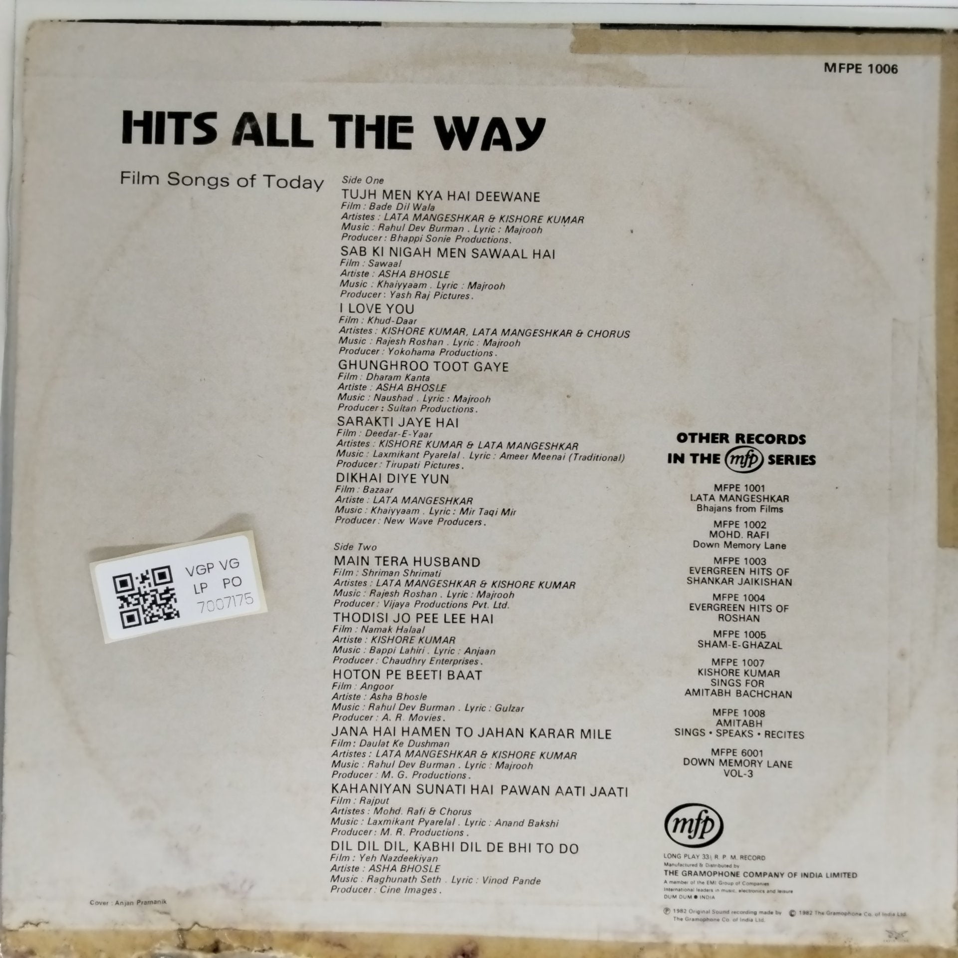 Kindly note, the photos shown of the LPs are stock photos and if you have any doubts/clarifications, please communicate to us before ordering.