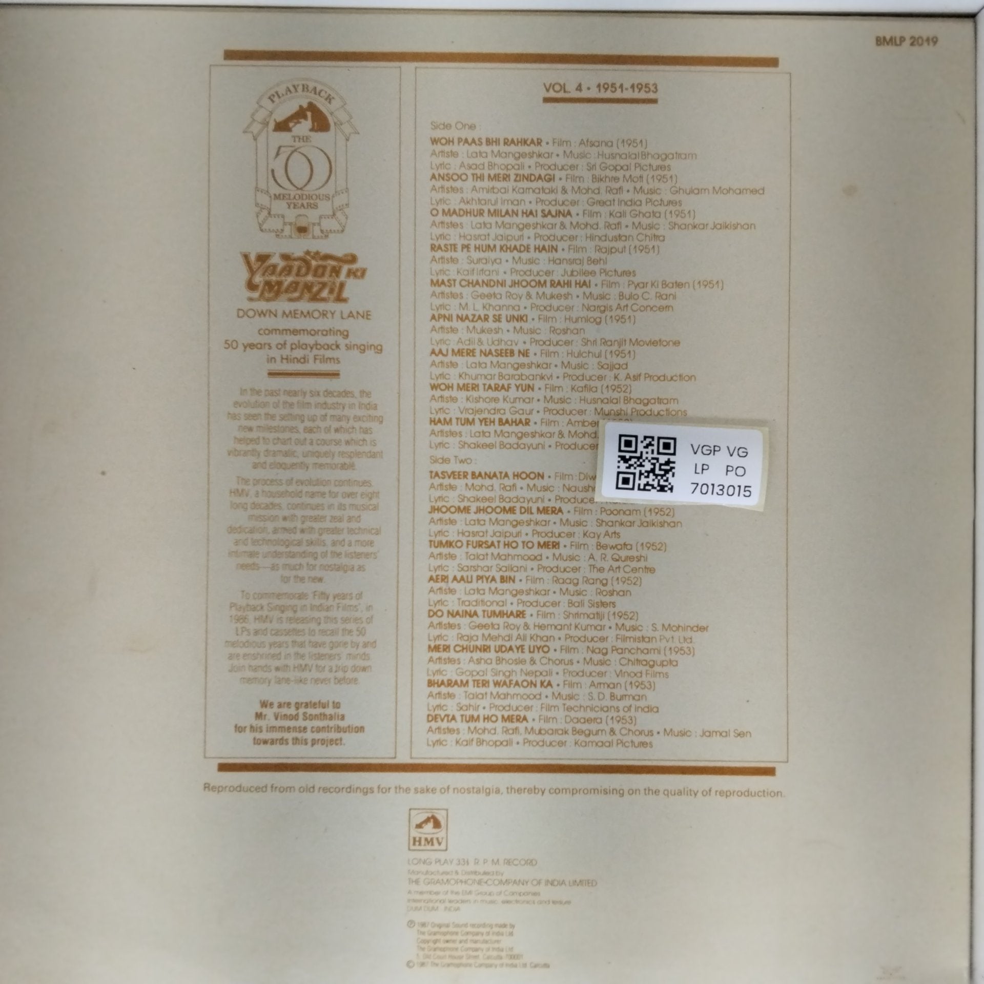 Kindly note, the photos shown of the LPs are stock photos and if you have any doubts/clarifications, please communicate to us before ordering.