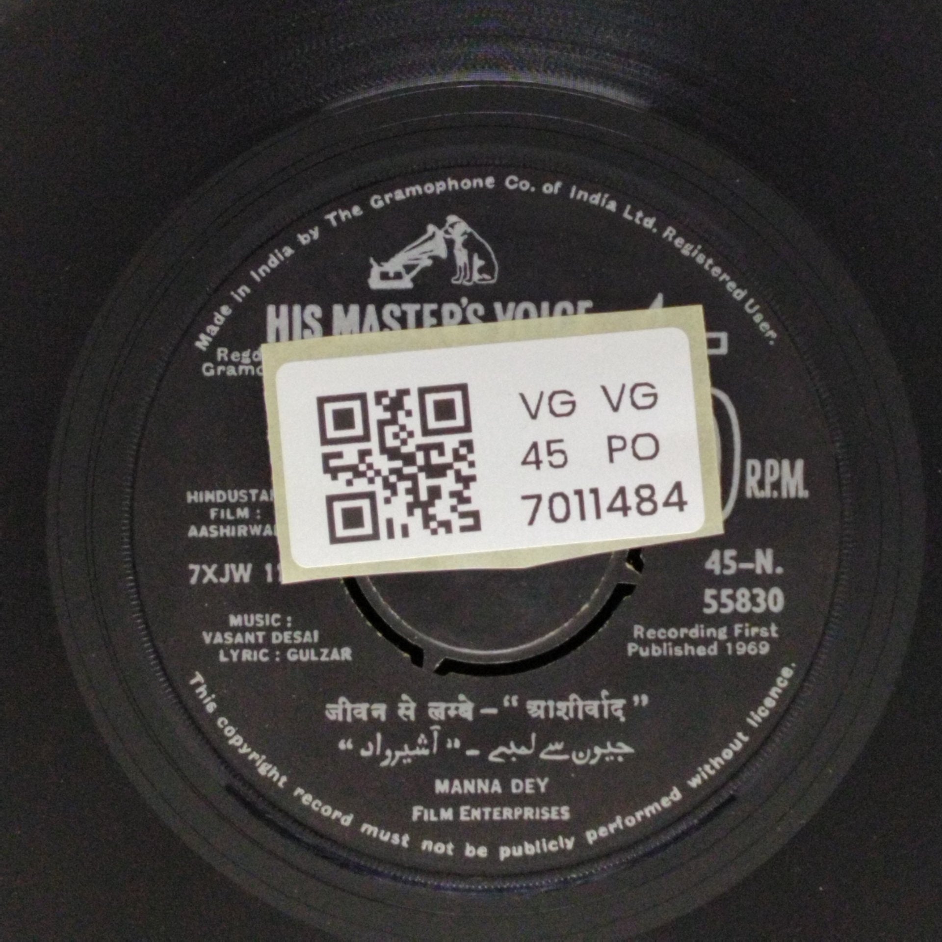 Generally worth 50% of the Near Mint value. A Very Good Plus record will show some signs that it was played and otherwise handled by a previous owner who took good care of it. Defects should be more of a cosmetic nature, not affecting the actual playback as a whole. Record surfaces may show some signs of wear and may have slight scuffs or very light scratches that don’t affect one’s listening experiences. Some background crackle esp in silent pasages is acceptable. Slight warps that do not affect the sound are “OK”. The label may have some ring wear or discoloration, but it should be barely noticeable. Spindle marks may be present. Picture sleeves and inner sleeves will have some slight wear, slightly turned-up corners, or a slight seam split. An LP cover may have slight signs of wear, and may be marred by a cut-out hole, indentation, or cut corner. In general, if not for a couple of minor things wrong with it, this would be Near Mint.