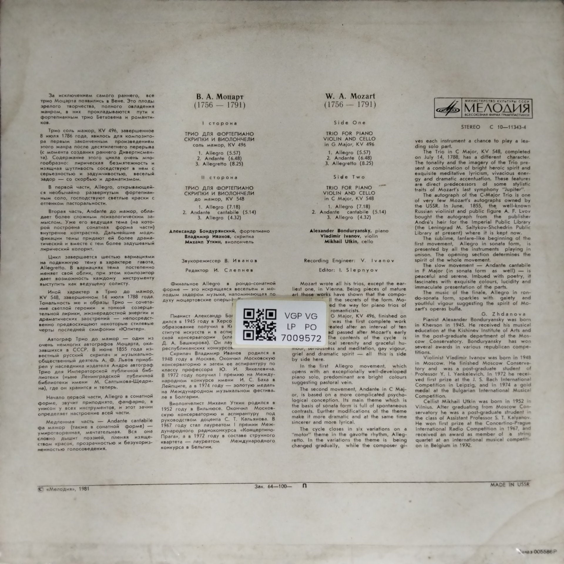 | Country & Year | USSR : 1981 |