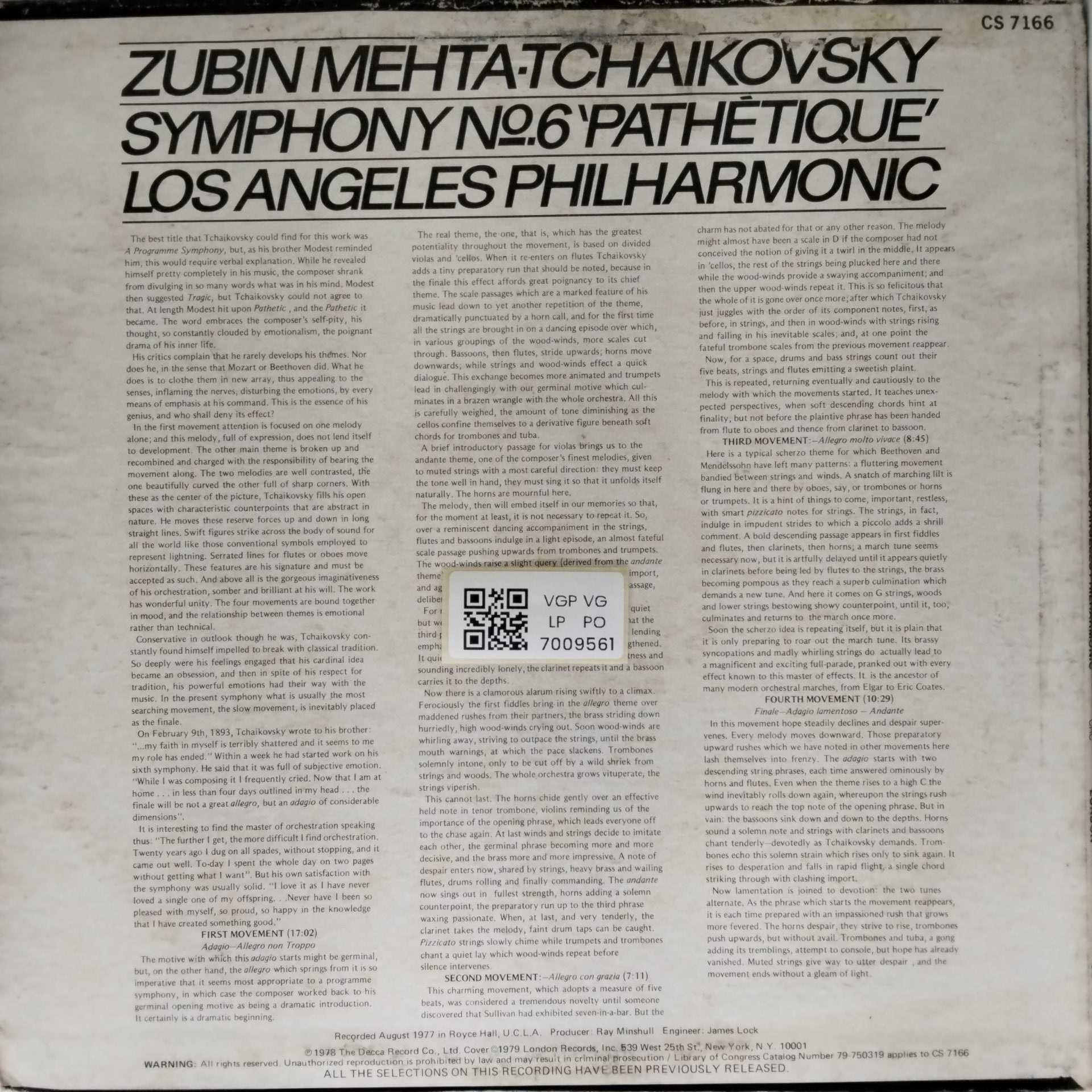 Generally worth 50% of the Near Mint value. A Very Good Plus record will show some signs that it was played and otherwise handled by a previous owner who took good care of it. Defects should be more of a cosmetic nature, not affecting the actual playback as a whole. Record surfaces may show some signs of wear and may have slight scuffs or very light scratches that don’t affect one’s listening experiences. Some background crackle esp in silent pasages is acceptable. Slight warps that do not affect the sound are “OK”. The label may have some ring wear or discoloration, but it should be barely noticeable. Spindle marks may be present. Picture sleeves and inner sleeves will have some slight wear, slightly turned-up corners, or a slight seam split. An LP cover may have slight signs of wear, and may be marred by a cut-out hole, indentation, or cut corner. In general, if not for a couple of minor things wrong with it, this would be Near Mint.